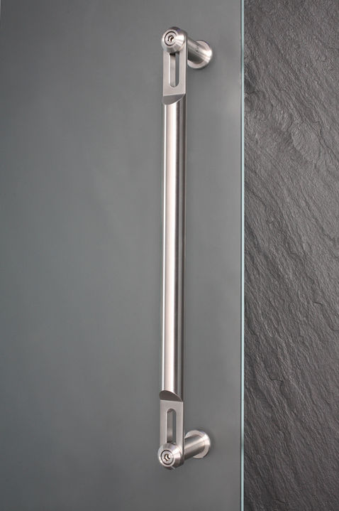 Dieser Türgriff wurde passend zum Schiebetürsystem Spider entwickelt. Die Befestigungen sind in der Höhe frei verstellbar.
